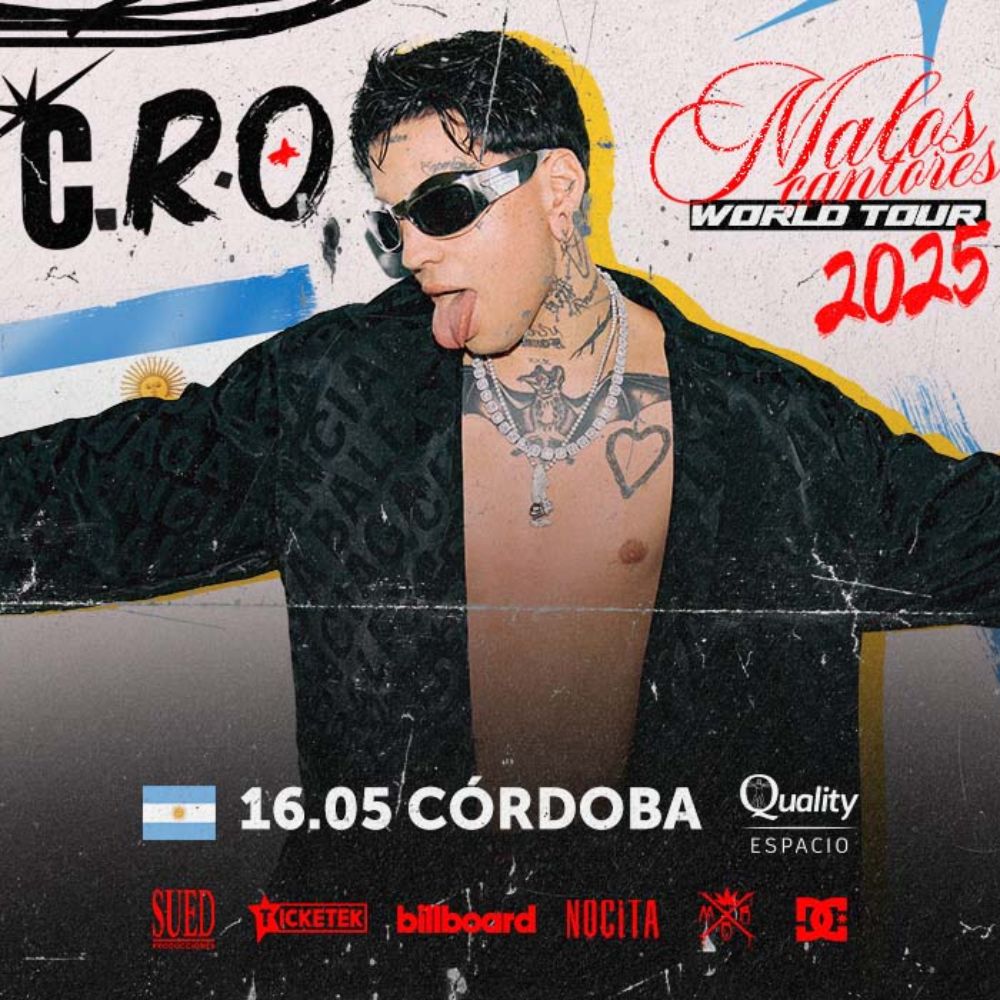 CRO es un cantante argentino destacado en el trap y el R&B. Miembro de Bardero$, fusiona ritmos urbanos con melancolía. Éxitos como Quiero creer y C90 lo consolidaron en la escena. Su versatilidad le ha permitido colaborar con artistas como Duki y Bizarrap. Su estilo introspectivo y su impacto en la música urbana lo posicionan como un referente generacional.